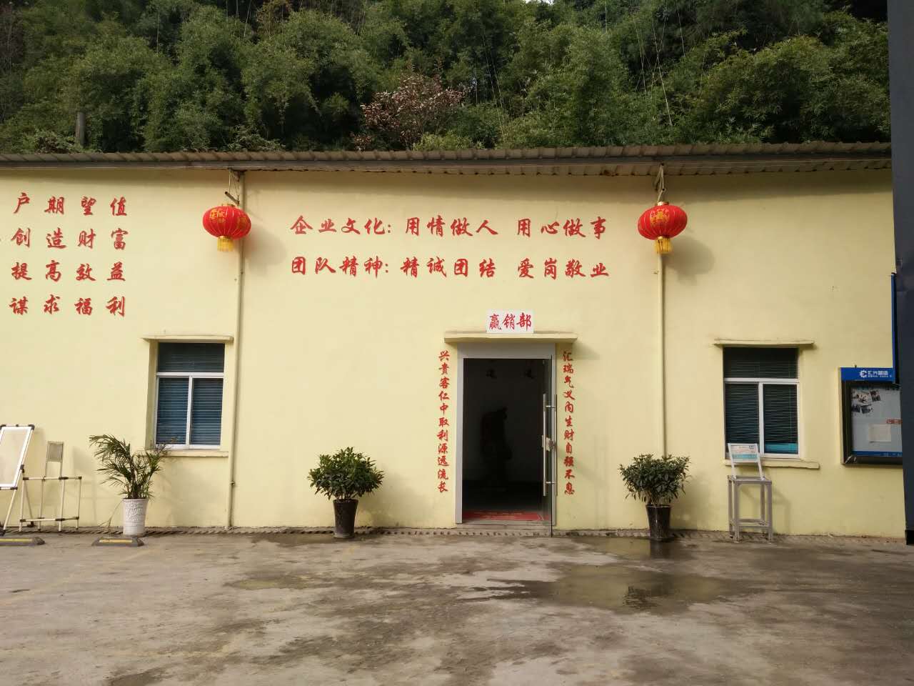 張燈結(jié)彩,彩旗飄飄-好山好水好地方好彩頭 陽光普灑在匯利興墻面上紅彤彤的燈籠兒掛立兩旁彰顯著匯利興紅火的前方,進(jìn)而也突顯著匯利興企業(yè)文化與團(tuán)隊(duì)精神同時(shí)也在溫暖著匯利興人的心 精神抖擻的匯利興人在認(rèn)真的工作 綠草青竹有著無顏六色的彩帶與氣球兒的點(diǎn)綴成為了一顆璀璨耀眼的明珠,一個(gè)“世外竹源”。