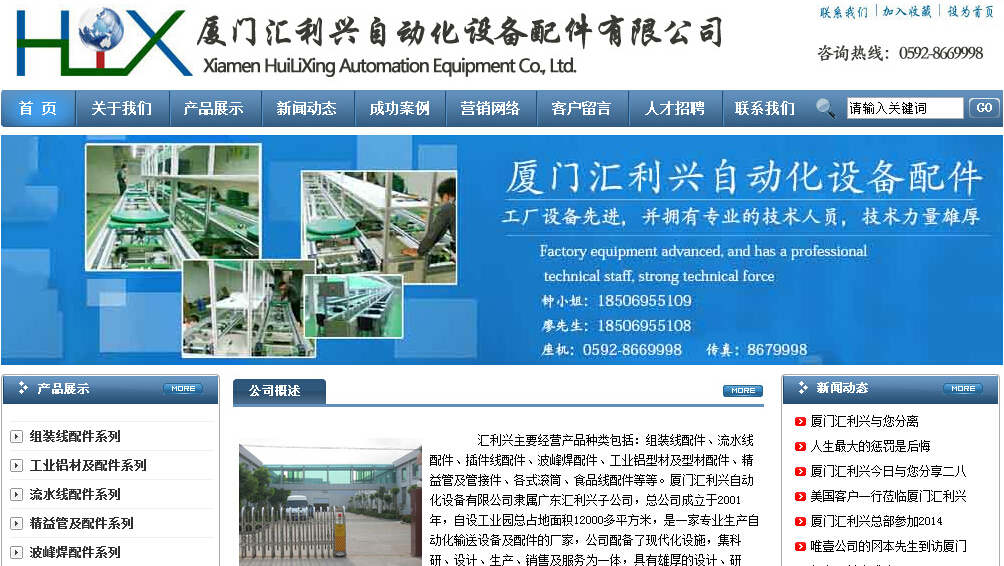 匯利興廈門公司注冊成立,這是匯利興集團(tuán)公司的里程碑,廈門公司位于同安區(qū)同安建材園48棟105-107號,業(yè)務(wù)聯(lián)系方式0592-8669998/8679998 傳真:0592-8679998手機(jī):18506955108廖先生 18506955109 鐘小姐。 匯利興總公司位于廣東東莞,自建匯利興工業(yè)園12000平方,公司目前已相繼在江蘇昆山,廣東深圳,重慶、香港設(shè)立分公司。更好的服務(wù)、提供優(yōu)質(zhì)便捷的服務(wù),匯利興一直造福于自動(dòng)化設(shè)備制造廠商、電子設(shè)備廠商,各類家用電器生產(chǎn)制造廠家,提供各類別質(zhì)優(yōu)廉價(jià)的生產(chǎn)線配件,整廠自動(dòng)化生產(chǎn)線。匯利興一直領(lǐng)跑業(yè)界為客戶創(chuàng)造更高的價(jià)值,我們站在業(yè)界更高峰,匯利興不同凡響!