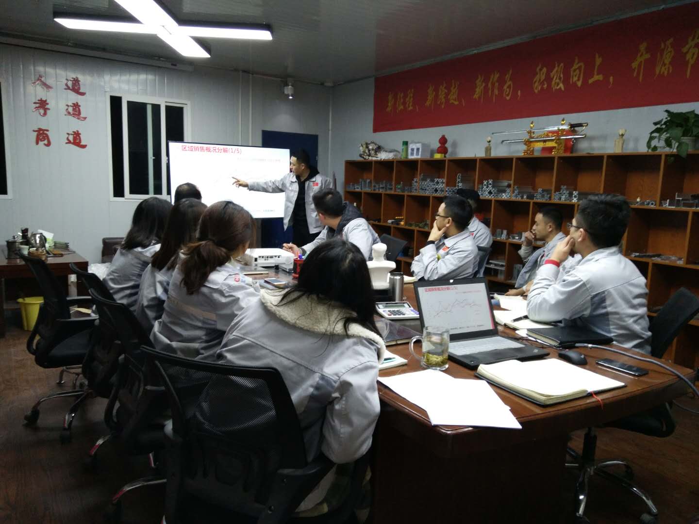 2019年1月7日,匯利興(重慶)公司全體銷售人員在匯興學(xué)校召開2018年度銷售總結(jié)會議,會議主題思想:聚力贏變,全心價值。會議歷時3.5小時,由胡偉路總經(jīng)理主持。 會議第一項:2018戰(zhàn)績總結(jié)。會上,胡總首先對2018年各板塊人員的工作表示肯定,對2018年工作中存在的不足和失誤進行了剖析,并希望2019年凝聚一心、砥礪前行。隨后談到2018年整體目標(biāo)的達成率及2019年工作布署。