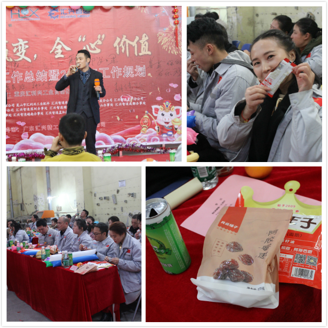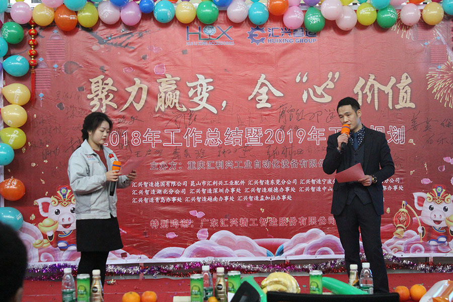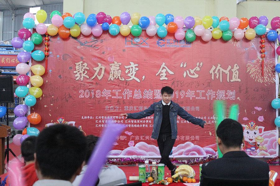 踏歌起舞辭舊歲,歡聲笑語(yǔ)迎新年。2019年1月19日下午,匯利興(重慶)公司在廠內(nèi)舉行了一場(chǎng)以“聚力贏變,全心價(jià)值”為主題的年終總結(jié)大會(huì)。會(huì)議主持人:石樂歡、熊學(xué)斌,參會(huì)人員:全體匯興家人。 56個(gè)民族56朵花,56個(gè)民族是一家,家人們以苗族竹竿舞進(jìn)場(chǎng),濃厚的民族氣息里不泛透露出匯興人愛國(guó)也愛匯興家。