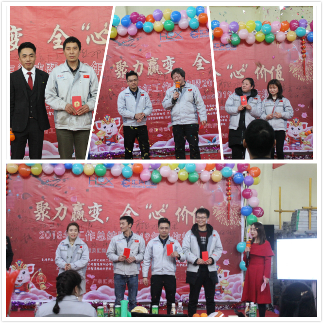特等獎(jiǎng)、一等獎(jiǎng)、二等獎(jiǎng)、三等獎(jiǎng) 人生百味,五味最常在-品嘗人生五味象牙塔(酸、甜、苦、辣、咸),胡總攜全體家人們一起品嘗五味,一起嘗遍酸、甜、苦、辣、咸,回味2018年點(diǎn)點(diǎn)滴滴幸福的甜及幸福的苦,一起同甘苦共患難,也正是有了這五味,讓匯興生活多姿多彩。 緊接著進(jìn)入頒獎(jiǎng)環(huán)節(jié),對(duì)2018年中所取得成績(jī)及進(jìn)步的家人分別頒發(fā)了最佳付出獎(jiǎng)、最佳團(tuán)隊(duì)獎(jiǎng)、最佳進(jìn)步獎(jiǎng)、鼓勵(lì)獎(jiǎng),以資鼓勵(lì)。隨后胡總宣讀人事任命(任命熊學(xué)斌為銷售副總、周榮任命為物控主管、蒲曾紅任命為外省市場(chǎng)部負(fù)責(zé)人)。  最佳進(jìn)步、最佳團(tuán)隊(duì)、最佳付出、鼓勵(lì)獎(jiǎng) 隨著時(shí)間的推移,年會(huì)逐步接近尾聲,全體匯興家人合唱匯利興之歌《相信我們會(huì)創(chuàng)造奇跡》,會(huì)議就隨著家人們的歌聲而告一段落,但匯興人追夢(mèng)的腳步卻一直在前進(jìn)。夢(mèng)想是豐滿的,未來(lái)更值得期待,2019年匯興人將用行動(dòng)詮釋“聚力贏變,全心價(jià)值”,加油!
