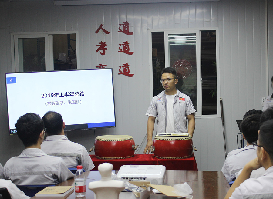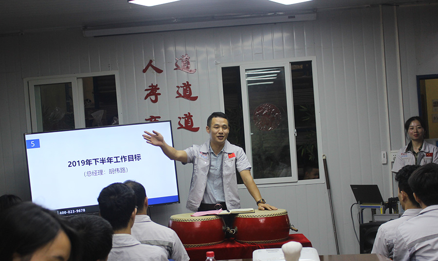 會(huì)議第二項(xiàng)議程,新員工入職歡迎儀式。為公司注入了新的血液及新的活力,本次新入員工有物控部及開發(fā)部的家人,在此希望他們?cè)谧约旱膷徫簧习l(fā)光發(fā)力,為公司貢獻(xiàn)自己的一份力量,同公司一起共前進(jìn),由常務(wù)副總張總為我們新員工頒發(fā)紀(jì)念品。 會(huì)議第三項(xiàng)議程,表彰儀式。為更好的帶動(dòng)員工的工作積極性,公司領(lǐng)導(dǎo)為上半年度表現(xiàn)突出的員工及部門分別頒發(fā)了“奉獻(xiàn)獎(jiǎng)、進(jìn)步獎(jiǎng)、優(yōu)秀部門獎(jiǎng)”,對(duì)上半年數(shù)據(jù)的統(tǒng)籌做出努力的家人給予獎(jiǎng)項(xiàng)鼓勵(lì),并號(hào)召全體員工向表現(xiàn)優(yōu)秀、貢獻(xiàn)杰出的團(tuán)隊(duì)和個(gè)人學(xué)習(xí)。 會(huì)議第四項(xiàng)議程,張國(guó)桃副總作2019年上半年工作總結(jié)。會(huì)上,張副總首先針對(duì)上半年整體工作情況對(duì)各部門工作進(jìn)行了點(diǎn)評(píng),對(duì)上半年取得成績(jī)給予了充分的肯定,其次在肯定各部門工作的同時(shí)也指出各部門存在的不足,而且強(qiáng)調(diào)工作中不僅要出工還要出活,同時(shí)要求各部門人員要加強(qiáng)各部門間的協(xié)作,并以百分百的工作熱情投入到工作中,努力做好本職工作,完成企業(yè)年度目標(biāo)。 會(huì)議第五項(xiàng)議程,胡偉路總經(jīng)理作2019年下半年工作目標(biāo)。首先,胡總強(qiáng)調(diào),在當(dāng)下競(jìng)爭(zhēng)如此激烈的環(huán)境下,每個(gè)人都要有危機(jī)意識(shí),每個(gè)人都應(yīng)積極主動(dòng)去落實(shí)好工作,堅(jiān)持做個(gè)一個(gè)實(shí)干型的匯興人;二、著重圍繞“三心兩力”準(zhǔn)則,具備耐心、信心、決心的理念,有執(zhí)行力、戰(zhàn)斗力去完成我們的年度目標(biāo);三、堅(jiān)決剔除對(duì)于工作散漫、不積極不上進(jìn)的做事風(fēng)格;四、針對(duì)公司存在的短板實(shí)施新的符合公司的合理措施;五、針對(duì)現(xiàn)有的規(guī)章制度將進(jìn)一步完善、規(guī)范;六、實(shí)施考核、監(jiān)管制度的工作流程,達(dá)到實(shí)際性效率的增長(zhǎng)。同時(shí)進(jìn)一步強(qiáng)調(diào),在下半年工作中,全員應(yīng)無(wú)條件執(zhí)行公司大小決策,全力以赴完成公司年度目標(biāo)。 最后,在會(huì)議結(jié)束前,集體觀看短片《世界等你開場(chǎng)》,正如短片所說(shuō),我相信心之所向,就是我想要的方向,面對(duì)夢(mèng)想,需要的是堅(jiān)持,同時(shí)鼓舞著匯興人想要成功必須得堅(jiān)持,想要完成夢(mèng)想,只有堅(jiān)持和奮斗,因?yàn)檫@是一個(gè)獎(jiǎng)勵(lì)拼搏的時(shí)代,想要贏得掌聲,必須要努力拼搏。