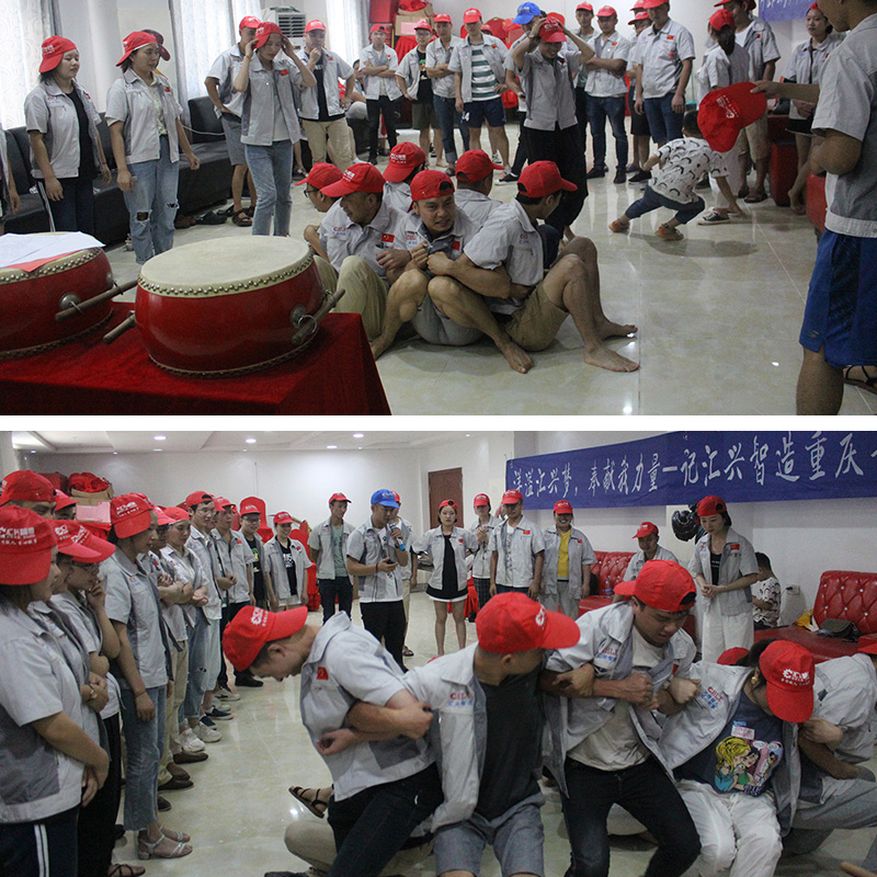 其次進行的是坐地而起,坐地而起是一項考驗團隊成員相互配合、協(xié)作、包容及溝通能力的游戲。現(xiàn)場氣氛熱烈、斗志昂揚,各自隊員氣勢如虹,大家背靠背,手挽手,口中叫喊著“一、二、三、起”,終于在大家?guī)追跋嗷ヅ浜舷?,以最快的速度取得了勝利。其實通過這個游戲我們發(fā)現(xiàn),在一個團隊中,每個人都是團隊的一份子,離開了誰這個挑戰(zhàn)都會失敗,只有大家一起發(fā)力,才能達到最后的成功。