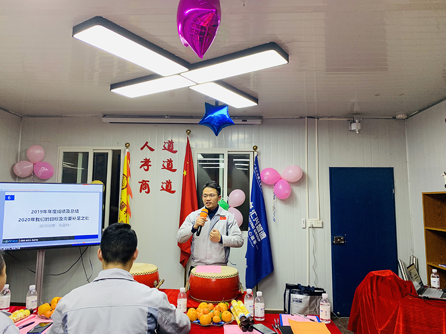 會議第二項議程,胡總經(jīng)理做2019年工作總結(jié)暨2020年工作規(guī)劃。胡總談到,2019年是充實且忙碌的一年,在這一年我們實現(xiàn)了企業(yè)規(guī)模的跨越,成功入駐西彭標(biāo)準(zhǔn)工業(yè)園,同時強(qiáng)調(diào)在2020年,經(jīng)濟(jì)下行的市場環(huán)境下,可以預(yù)料和難以預(yù)料的風(fēng)險挑戰(zhàn)會更多更大,因此全體人員必須提高戰(zhàn)斗意識,做好打攻堅戰(zhàn)的準(zhǔn)備,切實抓好開源節(jié)流各項工作,確保公司實現(xiàn)經(jīng)營指標(biāo)的跨越,完成整體團(tuán)隊目標(biāo)。胡總談到,在面對充滿挑戰(zhàn)的2020年,我們需要腳踏實地走穩(wěn)每一步,全力以赴為公司添彩,為匯興智造集團(tuán)20周年華誕獻(xiàn)禮。