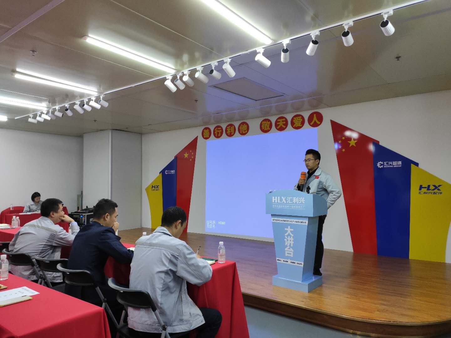 10月26日19點(diǎn)55分,匯利興西南工廠全體管理人員在匯利興學(xué)校開展周例會(huì),公開匯報(bào)工作,公眾承諾踐行,總結(jié)工作經(jīng)驗(yàn),規(guī)劃部門未來(lái)發(fā)展。公司主要職能部門參于此會(huì)。