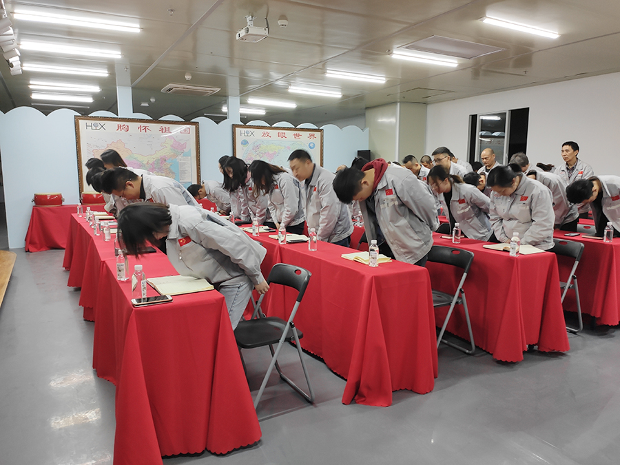 會(huì)議前,由二位高管擊響士氣鼓,鼓舞士氣,鼓舞著戰(zhàn)友們奮勇前進(jìn),并以這種以評(píng)促進(jìn)、你追我趕的“激勵(lì)文化”,潛移默化融于員工的日常工作中,同時(shí)也鞭策著員工們不斷爭先創(chuàng)優(yōu),推動(dòng)企業(yè)發(fā)展內(nèi)生動(dòng)力,從而形成“我來干、搶著干、努力干”的工作作風(fēng)?,F(xiàn)場鼓聲震天,士氣如虹。 會(huì)議第一項(xiàng),企業(yè)文化展示。全體員工整肅衣冠,對(duì)倍加推崇的孝道、商道、人道鄭重鞠躬,莊嚴(yán)宣誓企業(yè)愿景:“成為行業(yè)優(yōu)秀的智能自動(dòng)化產(chǎn)業(yè)鏈集成服務(wù)商”,企業(yè)使命:做受尊敬的好人,造受尊敬的產(chǎn)品,辦受尊敬的企業(yè),建受尊敬的平臺(tái),企業(yè)精神“用情做人、用心做事”,團(tuán)隊(duì)精神“忠誠團(tuán)結(jié)、勤奮進(jìn)取”,工匠精神:創(chuàng)于手、精于工、智于器、匠于心、品于行等。