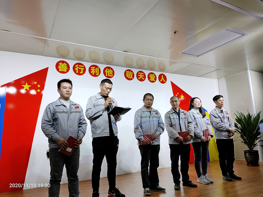 2020年11月19日18點(diǎn)45分,匯利興西南工廠全體員工在匯利興學(xué)校召開10月月度會(huì)議,由總經(jīng)辦張琳烯主持。