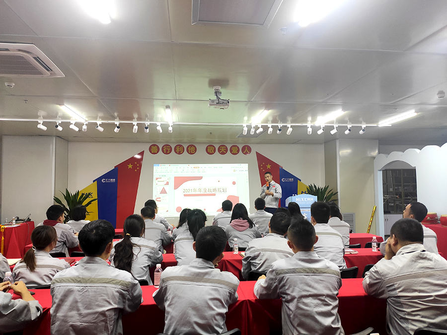 會(huì)議第五項(xiàng)議程,積分制度詮釋。積分制度開展將近一個(gè)月,在總經(jīng)辦的全力領(lǐng)導(dǎo)下,各部門持續(xù)且有效開展部門工作,充分調(diào)動(dòng)了各部門工作的積極性,提高公司在同行業(yè)競爭力,增強(qiáng)公司團(tuán)隊(duì)內(nèi)部戰(zhàn)斗力,加強(qiáng)公司在行業(yè)內(nèi)的創(chuàng)新力,為公司五年戰(zhàn)略規(guī)劃提供原動(dòng)力。有效踐行了全體員工自上而下形成“我來干、搶著干、努力干”的工作作風(fēng),并進(jìn)一步向新入員工宣導(dǎo)積分管理制度一系列準(zhǔn)則。 會(huì)議第6項(xiàng)議程,胡總經(jīng)理講話。首先胡總經(jīng)理從八大要素來解析2021年年度戰(zhàn)略規(guī)劃(戰(zhàn)略基礎(chǔ)、年度業(yè)績目標(biāo)、人力資源保障、運(yùn)營、生產(chǎn)資源保障、綜合管理保障、財(cái)務(wù)資源保障、組織管理保障、人員配置系統(tǒng))等,進(jìn)一步提高公司在同行業(yè)競爭力,增強(qiáng)公司團(tuán)隊(duì)內(nèi)部戰(zhàn)斗力,加強(qiáng)公司在行業(yè)內(nèi)的創(chuàng)新力,為公司五年戰(zhàn)略規(guī)劃提供原動(dòng)力;第二、胡總經(jīng)理談到:在2021年大市場環(huán)境下,各部門主管要認(rèn)真審視公司內(nèi)部優(yōu)勢(shì)和劣勢(shì)、強(qiáng)項(xiàng)和弱項(xiàng)的基礎(chǔ)上,對(duì)當(dāng)前行業(yè)的競爭形勢(shì)和趨勢(shì)作出基本研判; 第三、貫徹公司對(duì)三個(gè)五年發(fā)展的要求和期望,結(jié)合公司運(yùn)營情況,要學(xué)會(huì)分析外部環(huán)境的劣勢(shì)和威脅、內(nèi)部的優(yōu)勢(shì)和發(fā)展機(jī)會(huì),確定公司發(fā)展方向,確保各項(xiàng)計(jì)劃順利落地; 第四、各部門管理執(zhí)行的各項(xiàng)工作、管理活動(dòng),包括任務(wù)制定、制度設(shè)立、日常管理,都必須始終不逾地圍繞戰(zhàn)略方針開展、貫徹和執(zhí)行; 第五、必須以“理順脈絡(luò)、根治病灶、提升效率”為目標(biāo),嚴(yán)格開展各項(xiàng)工作; 第六、匯利興耕耘行業(yè)20載,深耕西南10年,致力打造成為自動(dòng)化輸送設(shè)備配件行業(yè)的一站式采購工廠,專業(yè)為行業(yè)客戶提供標(biāo)準(zhǔn)化、定制化、個(gè)性化、模塊化的專用高端精密零部件,愿全體員工拿出眾人拾柴的心勁兒、勇毅篤行的穩(wěn)勁兒一同去開辟公司的未來!助力公司前進(jìn)!
