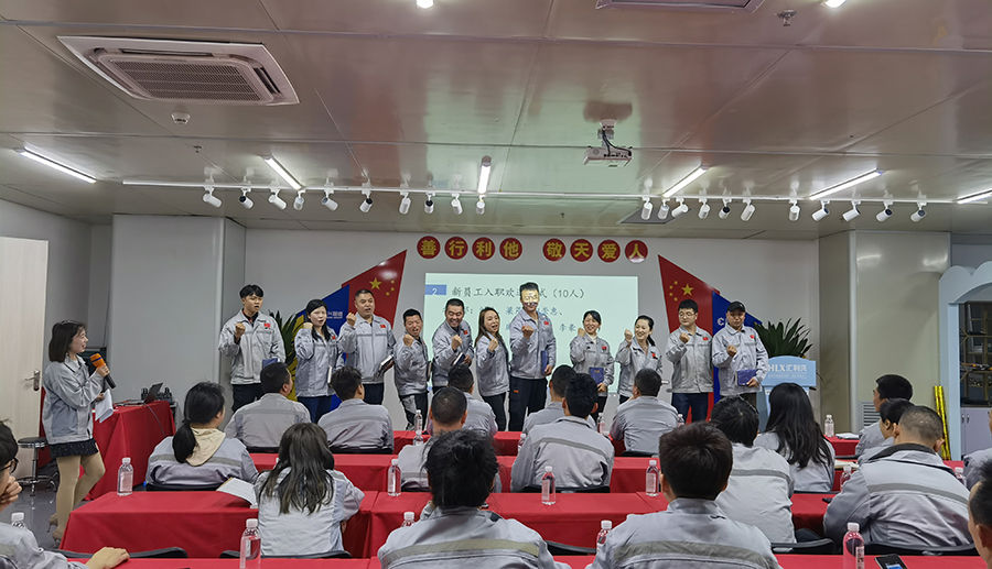 會(huì)議開(kāi)始,三位高管敲響2021年征程的號(hào)角,鼓聲震天,士氣如虹,潛移默化鼓舞著戰(zhàn)友們奮勇前進(jìn),并以這種以評(píng)促進(jìn)、你追我趕的“激勵(lì)文化”,鞭策著員工們不斷爭(zhēng)先創(chuàng)優(yōu),推動(dòng)企業(yè)發(fā)展內(nèi)生動(dòng)力,從而形成“我來(lái)干、搶著干、努力干”的工作作風(fēng)。 會(huì)議第一項(xiàng),企業(yè)文化展示。全體員工整肅衣冠,對(duì)倍加推崇的孝道、商道、人道鄭重鞠躬,莊嚴(yán)宣誓企業(yè)愿景:“成為行業(yè)優(yōu)秀的智能自動(dòng)化產(chǎn)業(yè)鏈集成服務(wù)商”,企業(yè)使命:做受尊敬的好人,造受尊敬的產(chǎn)品,辦受尊敬的企業(yè),建受尊敬的平臺(tái),企業(yè)精神“用情做人、用心做事”,團(tuán)隊(duì)精神“忠誠(chéng)團(tuán)結(jié)、勤奮進(jìn)取”,工匠精神:創(chuàng)于手、精于工、智于器、匠于心、品于行等。 會(huì)議第二項(xiàng)。新員工入職歡迎儀式,培育新生力量,助力企業(yè)發(fā)展,增強(qiáng)企業(yè)核心競(jìng)爭(zhēng)力,強(qiáng)化人才建設(shè)梯隊(duì)。由客服部經(jīng)理石樂(lè)歡為新入員工頒發(fā)紀(jì)念品。
