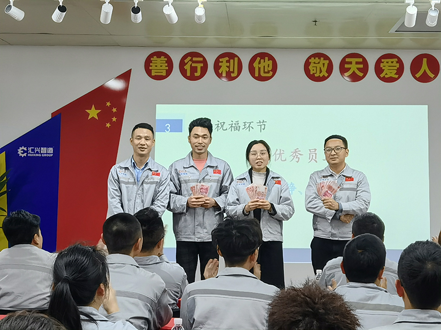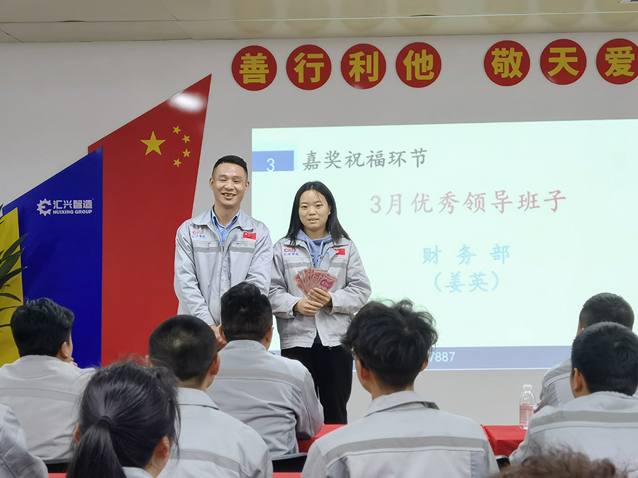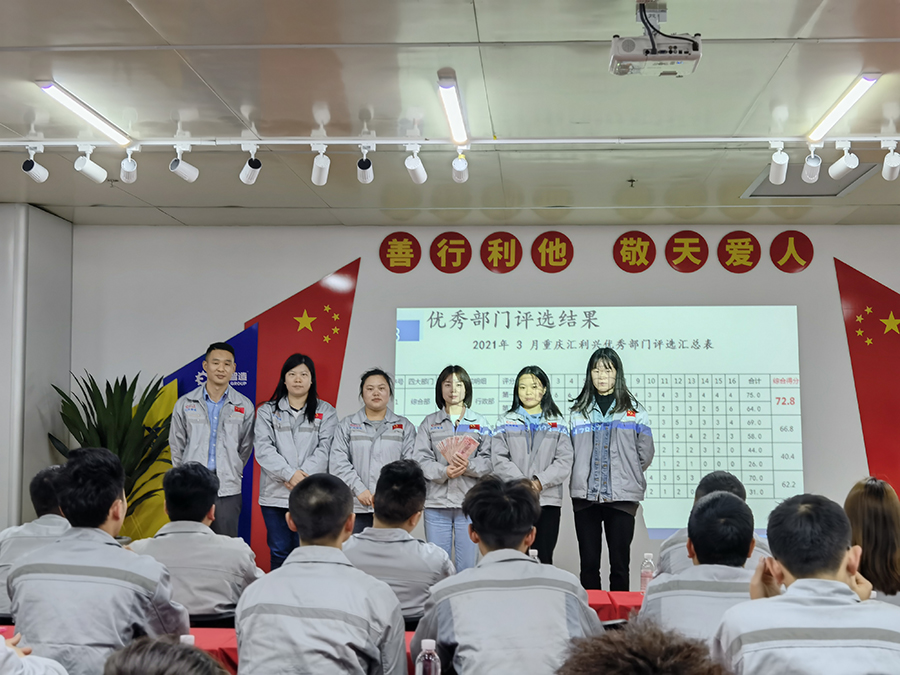 業(yè)精于勤,荒于嬉,行成于思,毀于隨??偨Y(jié)上個月工作情況,統(tǒng)籌下一個月工作計(jì)劃。匯利興西南工廠于4月9日18點(diǎn)40分,在匯利興學(xué)校召開三月月度會議。銷售主管劉文主持,匯利興西南工廠全體職員參會。會議開始,兩位高管敲響士氣鼓,敲響我們出征的號角,前進(jìn)的戰(zhàn)鼓,鼓舞著每位員工沖鋒打勝仗的決心和毅力。全體員工向企業(yè)三道孝道、商道、人道鄭重鞠躬,宣讀企業(yè)文化,并對本月新入員工進(jìn)行歡迎儀式。 春天是播種的季節(jié),同時也是催人奮進(jìn)的季節(jié)。為了表彰在三月份表現(xiàn)突出的優(yōu)秀個人、優(yōu)秀主管、優(yōu)秀部門,充分發(fā)揮引領(lǐng)示范作用,最大限度調(diào)動和激發(fā)員工向優(yōu)秀人員看齊、不斷提高工作的積極性和創(chuàng)造性。本次榮獲優(yōu)秀員工(曾濤、邵靜、鄧筵暉)、優(yōu)秀主管(姜英)、優(yōu)秀部門(綜合部)。自成立以來,公司大力宣導(dǎo)我來干、努力干、拼命干的工作作風(fēng),積極鼓勵無私奉獻(xiàn)、恪盡職守的三好匯興人,并堅(jiān)持打造一支有愛、有力量、有活力的團(tuán)隊(duì)。